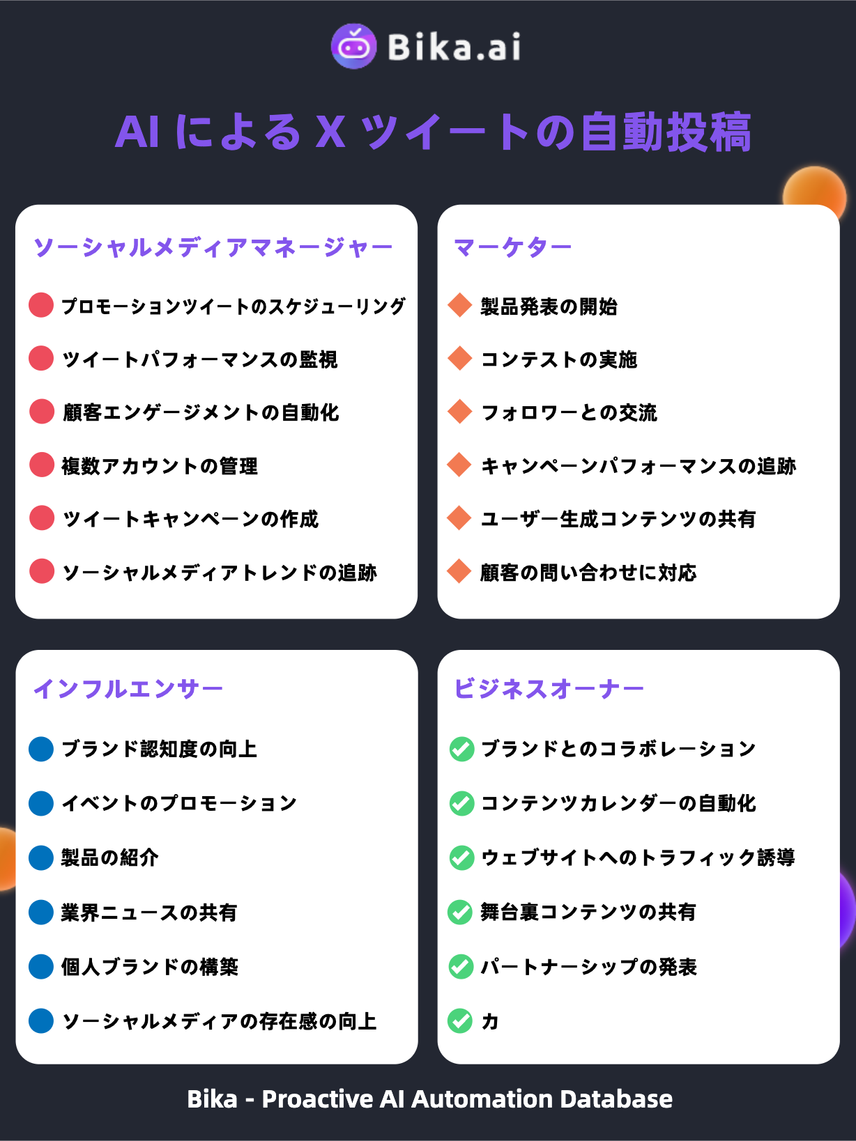 AIによるXツイート自動投稿は、チームのソーシャルメディア運用を効率化し、ビジネスの成長に貢献できます。bika.aiのテンプレートをぜひ活用して、チームのパフォーマンスを高めていきましょう。